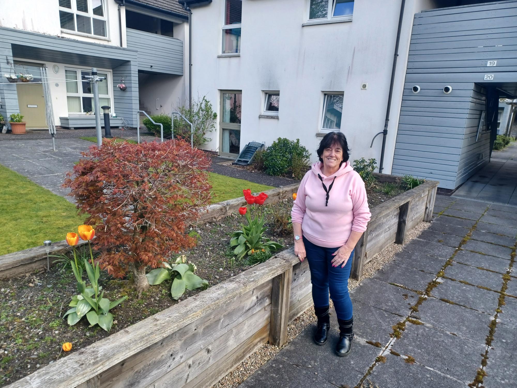 The garden area is now blooming thanks to the money from her social landlord.
